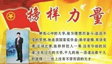 与其说是他创造了奇迹,不如说他战胜了自己。鲜花与掌声并不能将他学习的脚步停留,他明白,自己的每一次成功都是新的起点;他坚信,天道酬勤,世上没有不劳而获的成果;他正在实践着自己心中的梦想,这就是我们的榜样——07物理的王凯!