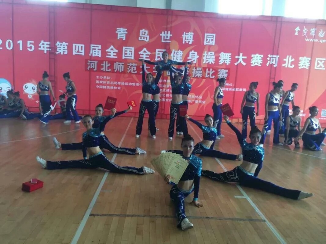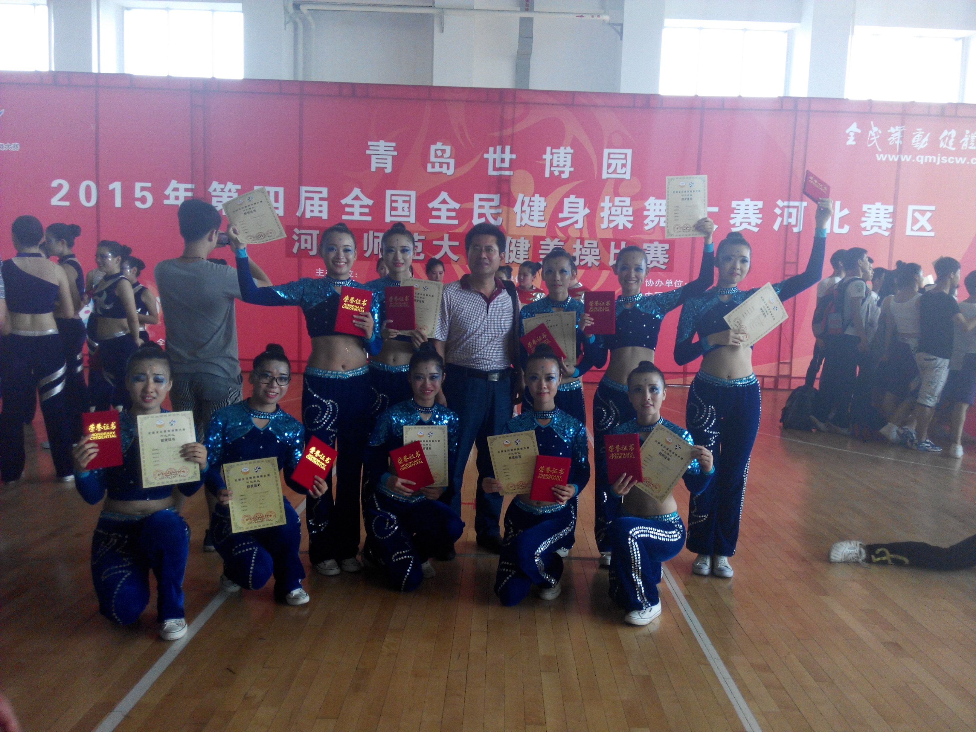 2015年6月28日,动漫A片 体育楼篮球馆内举行了青岛世博园2015年第四届全民健美操舞大赛河北赛区暨动漫A片 健美操大赛,各学院的团委书记莅临本次大赛。物理科学与信息工程学院健美操队在本次比赛中荣获特等奖、一等奖。