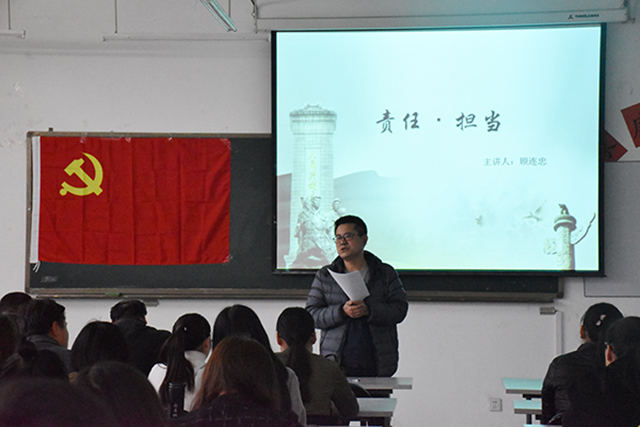 顾连忠以“责任·担当”为主题,为学生党员讲党课。他结合习近平总书记在全国高校思想政治工作会议和省委书记赵克志在河北省高校思想政治工作会议上的讲话精神,围绕学校“十三五”规划和“双一流”建设任务,给党员同志提出明确要求。他指出,学生党员要强化责任意识,不断加强政治理论学习,努力提高思想水平、政治觉悟和道德品质,做一名敢于担当,甘于奉献的合格党员,这是一种思想境界,更是党性的要求。学院注重培养学生综合素质,着力提升学生科研能力、从教素质、动手能力,他要求党员同志要在人才培养的各个环节做好自己,榜样引领,带动学生队伍沿着正确的方向健康发展。