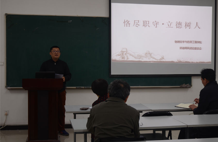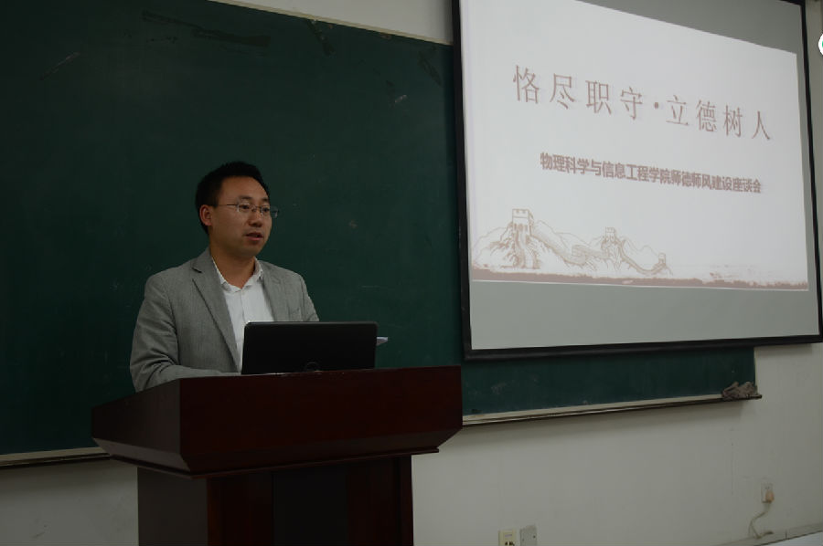 10月12日下午,动漫A片 在理科群2-A302教室召开了以“恪尽职守,立德树人”为主题的师德师风建设报告会。院长张书敏主持报告会,宋俊涛、杨振军、康建波三位教师代表发言,全院教职员工参加了报告会。