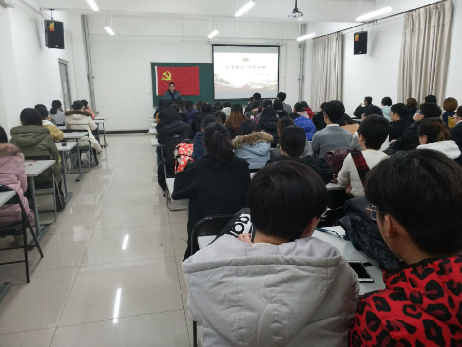 2017年12月26日下午,学院在理科群2-A302召开了全体学生党员大会。党委副书记顾连忠、党委委员康建波为学生党员上党课。