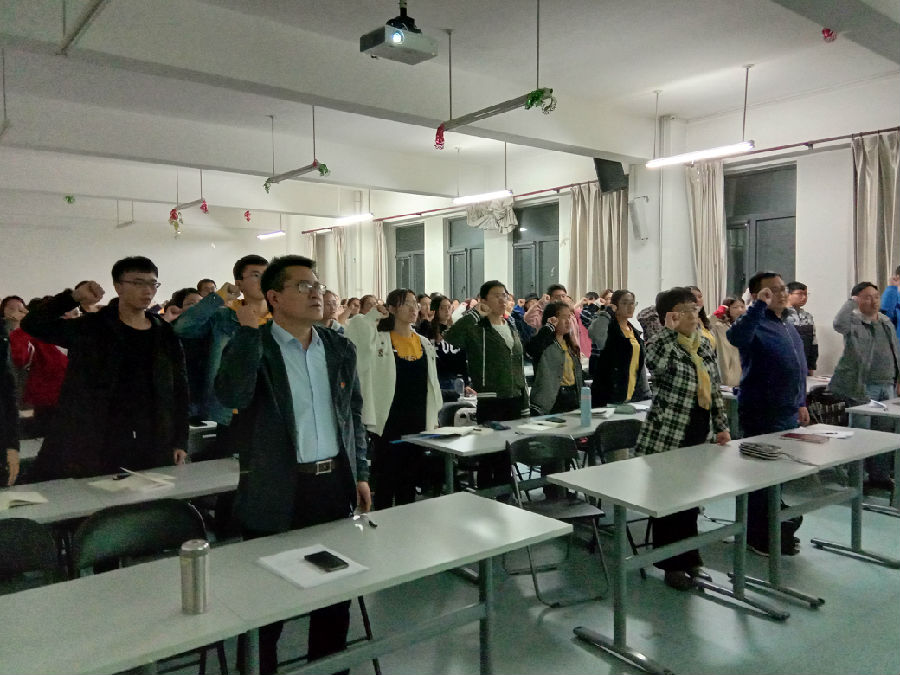 为深入学习贯彻习近平新时代中国特色社会主义思想和党的十九大精神,深入推进“不忘初心·牢记使命”学习教育,动漫A片 于2019年10月21日晚组织师生收看了中央电视台《榜样4》专题节目,重温入党誓词。
