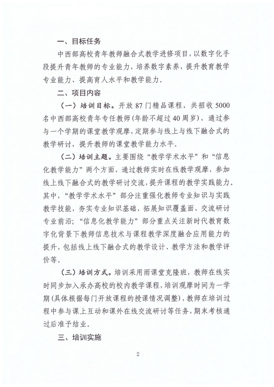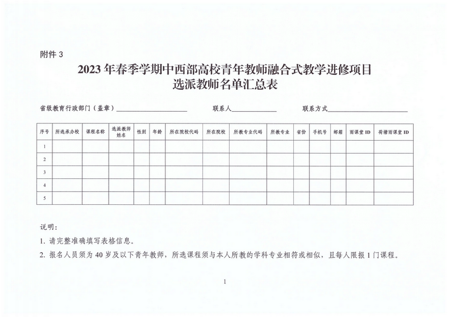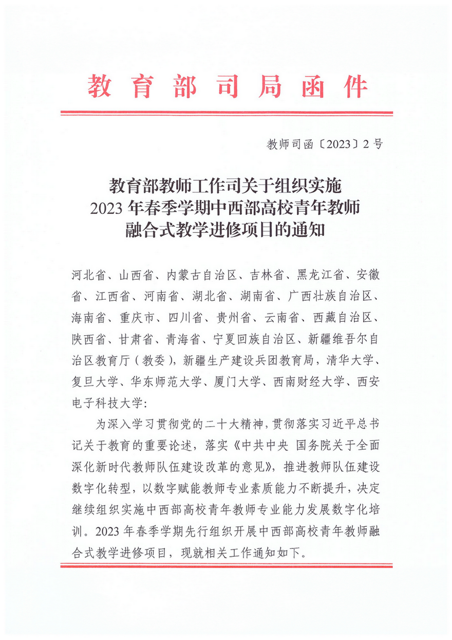 关于组织实施2023年春季学期中西部高校青年教师融合式教学进修项目的通知
