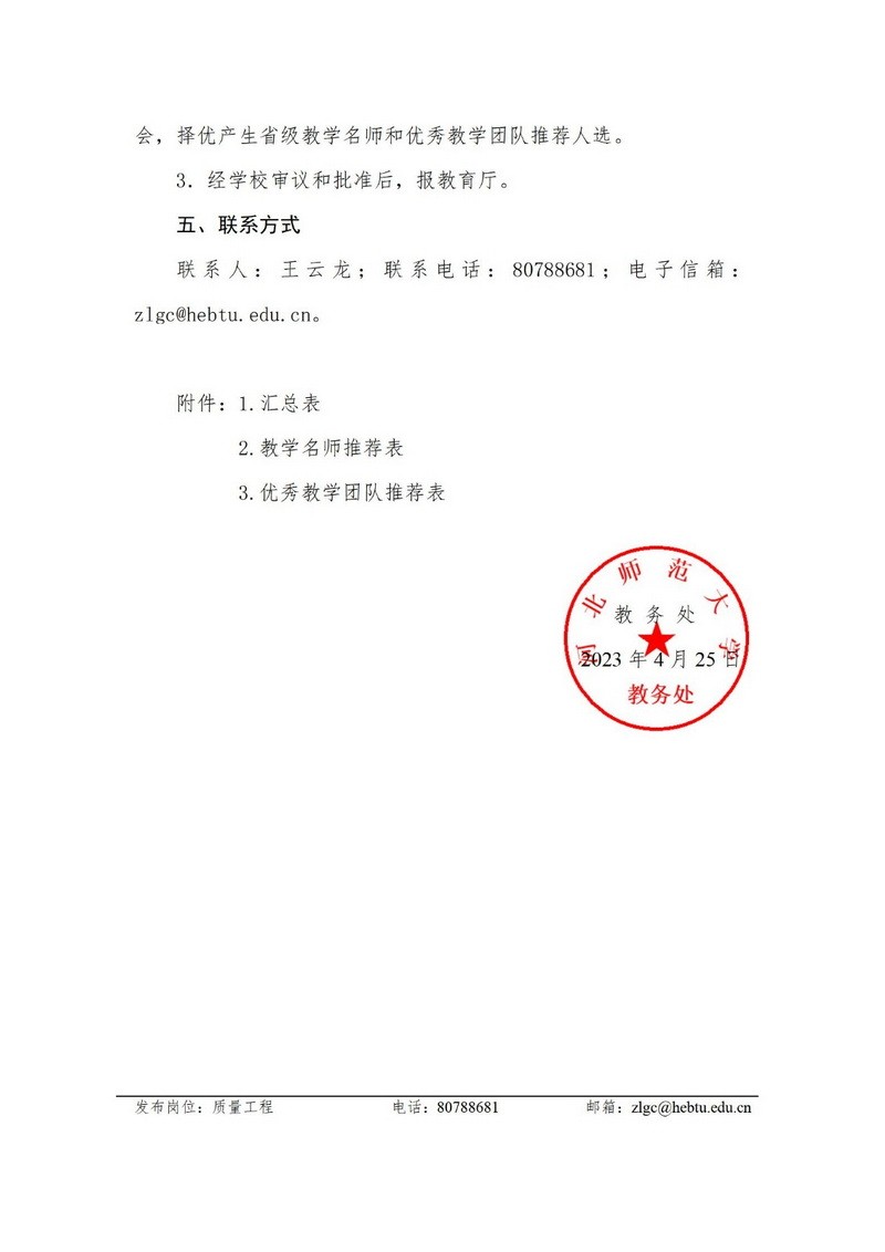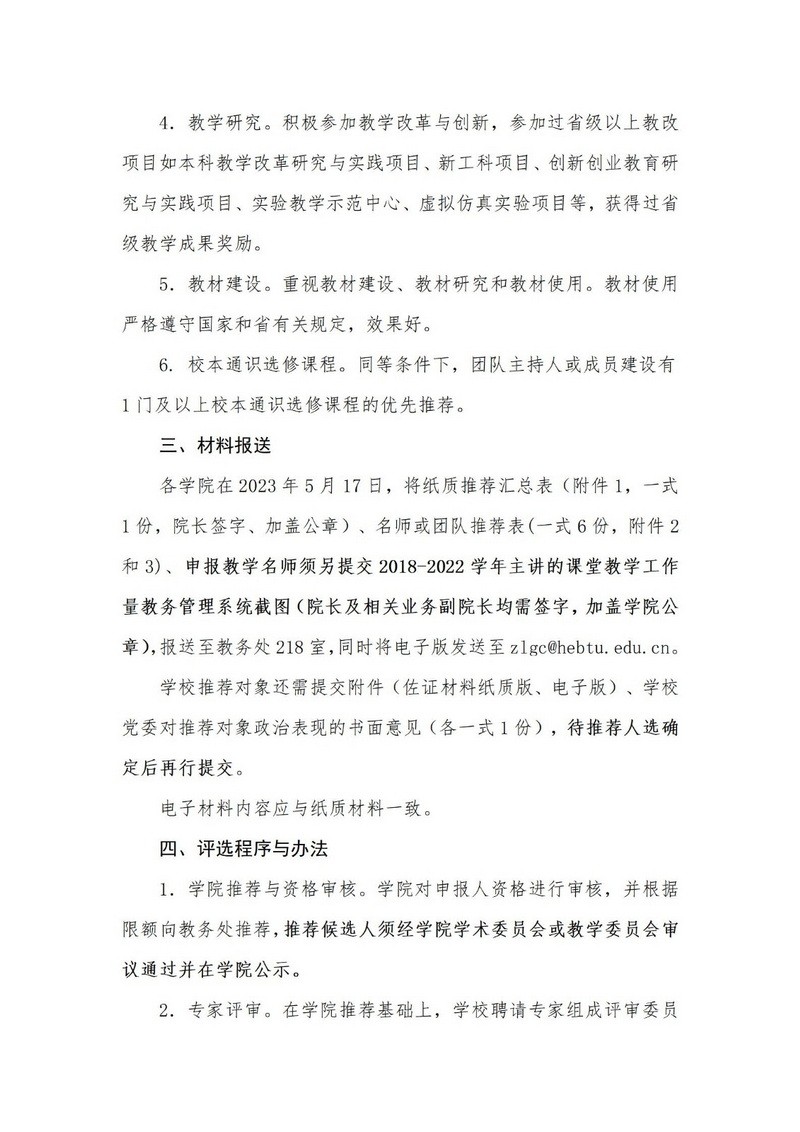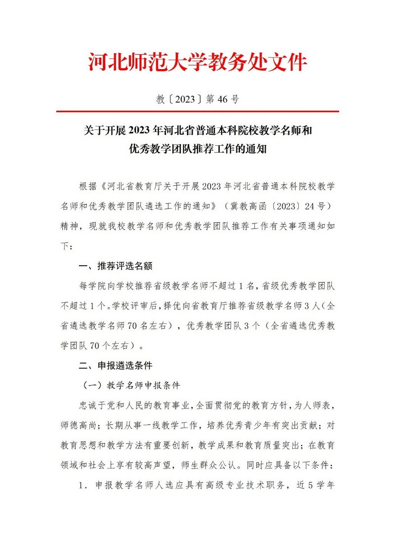 关于开展2023年河北省普通本科院校教学名师和优秀教学团队推荐工作的通知