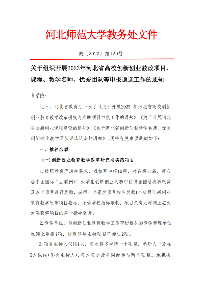 关于申报河北创新创业类项目的通知