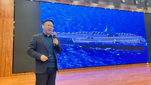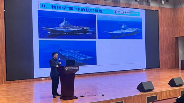 宋俊涛院长以航母舰载机发射技术的迭代史为切入点,巧妙将抽象的物理定律与国防科技的重大突破相连,用通俗鲜活的语言拆解物理学科的核心价值。从蒸汽弹射装置背后的力学原理,到电磁弹射技术依赖的电磁感应理论;从牛顿力学奠定的经典物理基石,到相对论拓展的认知边界,他以层层递进的逻辑,清晰展现了物理知识如何成为铸就国之重器的“硬核密码”,彻底扭转了同学们对物理“枯燥难懂”的刻板印象。