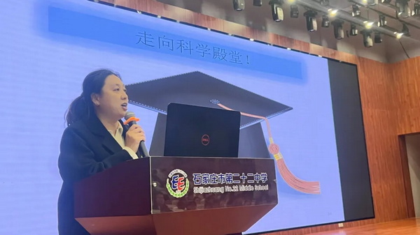 石家庄市第二十二中学副校长孙美英在总结发言中,对宋俊涛院长的精彩分享表达诚挚谢意。她表示,宋院长的讲座不仅传递了系统的科学知识,更诠释了科学家的责任与担当,为同学们的成长之路树立了清晰标杆,也为校地教育协同发展注入了新动能。
