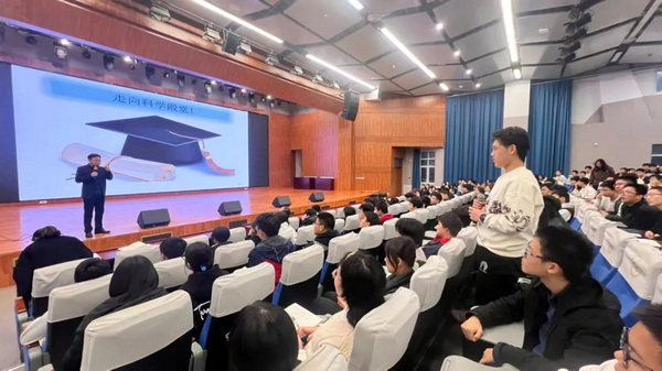 互动环节成为现场气氛的高潮。宋院长耐心回应每一位学子的提问,无论是日常现象的物理阐释,还是前沿科技的发展趋势,他都以严谨又不失风趣的风格细致解答。当有同学问及“物理学习与科技报国的关联”时,他深情寄语:“基础学科是创新的根基,今天在心中种下的物理种子,未来或许就能长成支撑国家发展的栋梁。”真挚的话语直击人心,现场随即响起经久不息的掌声。